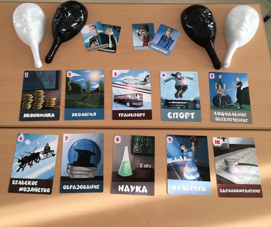 Игра напоминала многоименную игру «Мафия». Целью игры являлось сохранение всех возможных сфер деятельности ЯНАО и выявить "коррупционеров" среди игроков. Ребята успешно справились с поставленной задачей, все "коррупционеры" были разоблачены. По завершению игры все участники получили благодарность.