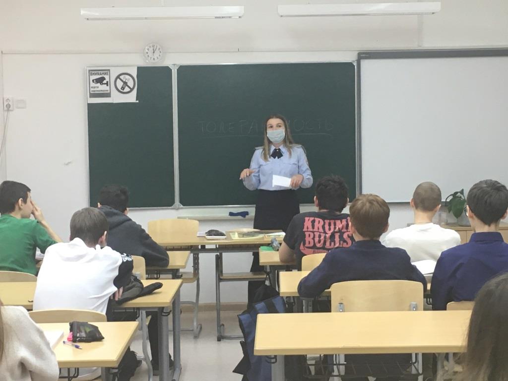 Главной темой обсуждения стала профилактика проявлений терроризма и экстремизма в молодежной среде. В рамках беседы с учащимися салехардские стражи порядка акцентировали внимание на различных проявлениях экстремизма и разъяснили, что распространение в социальных сетях информации, направленной на возбуждение ненависти или вражды, а также на унижение человеческого достоинства, в том числе по национальному признаку, является одной из форм экстремизма. Инспектор направления по связям со СМИ старший лейтенант внутренней службы Яна Егорова рассказала школьникам об опасных Интернет-сообществах и дала советы, как уберечь себя от противоправных деяний, совершаемых в виртуальном пространстве. Председатель ветеранской организации ОМВД России по г. Салехарду майор полиции в отставке, посвятивший более двадцати лет делу борьбы с подростковой преступностью, Юрий Алексеевич Николаев рассказал ребятам о пагубности влияния наркотиков на жизнь человека. В завершении мероприятия ребята поблагодарили полицейских за интересную и познавательную беседу.
