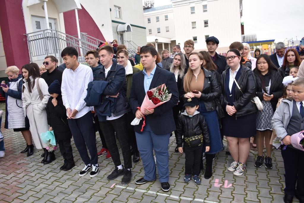 Право дать первый звонок началу 2021-22 учебному году предоставилось ученику 11 класса – Осмонову Абаю и ученице 1 класса – Либерт Эмилии, в 9 классе право дать первый звонок предоставилось Усенко Елизавете.