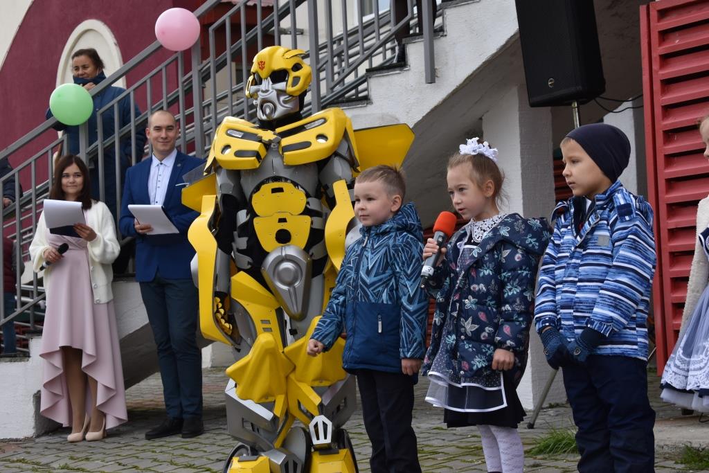 Так же в гости к первоклассникам пришли трансформеры Бамблби и Оптимус Прайм.